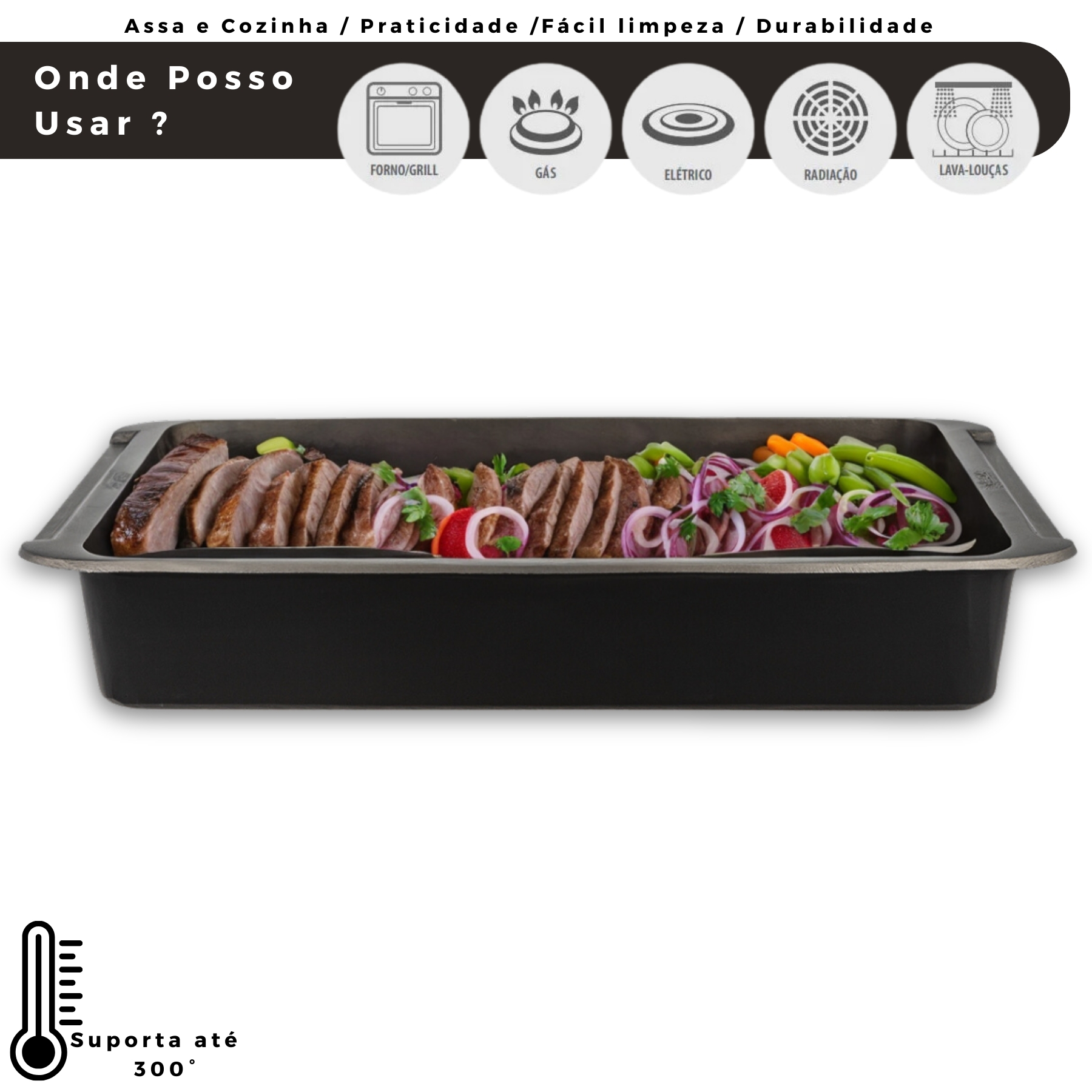 Assadeira e Travessa de Alumínio Antiaderente 38×15 Preta