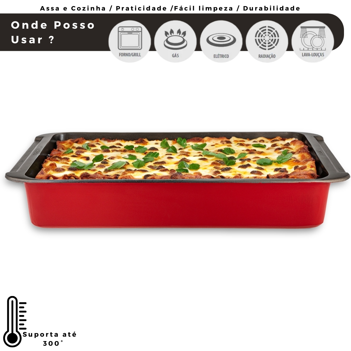 Assadeira e Travessa de Alumínio Antiaderente 23×23 Vermelha