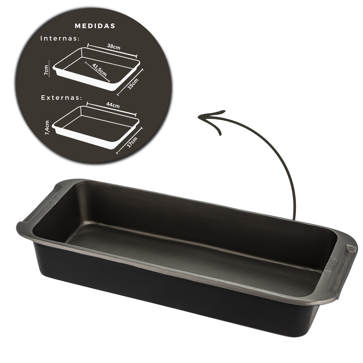 Antes de utilizar, limpe a forma/assadeira com água quente e detergente neutro, seque bem e estará pronta para uso. Para limpar a forma após o uso, lave com água morna e sabão, limpe com pano e seque bem. Não utilize esponjas de aço, palha de aço, ou outros abrasivos. Para remover alimentos queimados, deixe o produto de molho por alguns minutos em água quente com sabão.
