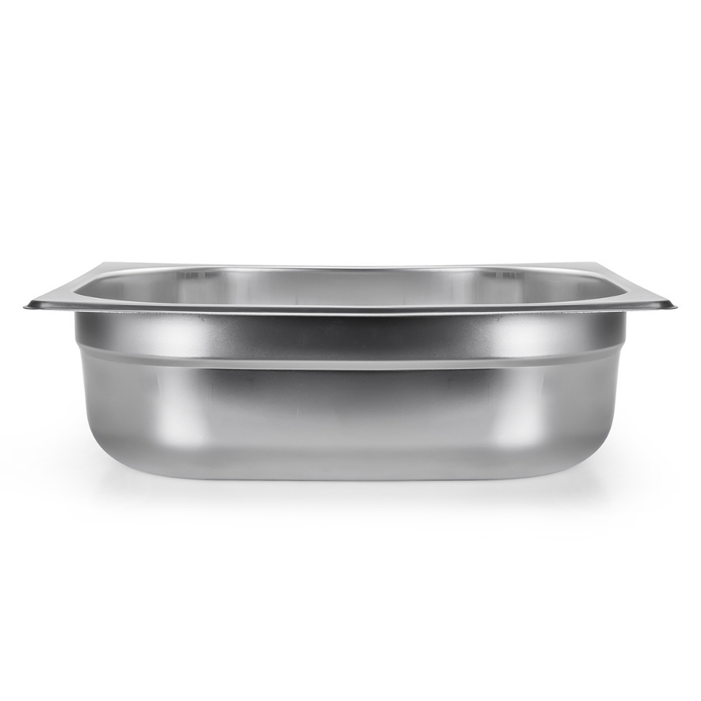 Dimensões externas: 32,5 × 26,5 cm (padrão gastronômico GN 1/2)