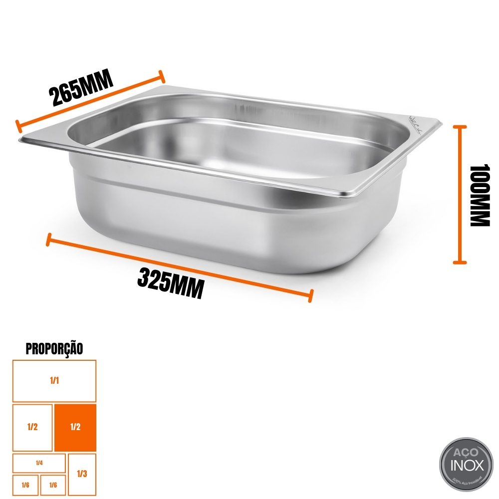 Tamanho: Cuba GN 1/2 – 100mm de profundidade