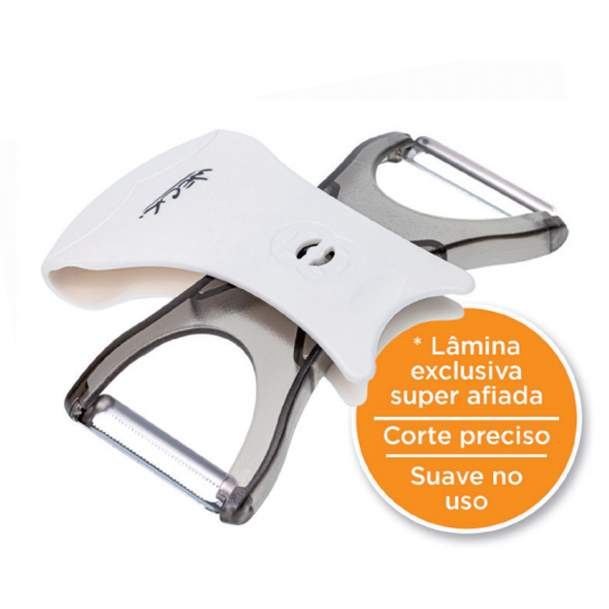 Esse produto possui duas lâminas, sendo uma delas para descascar e a outra para fatiar, é como ter dois produtos em um. Com uma lâmina exclusiva super afiada esse produto te garante um corte preciso, e com suavidade em seu uso.