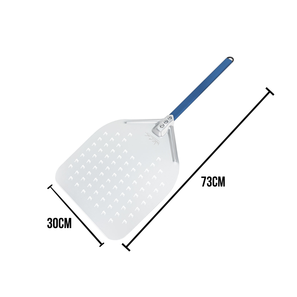 Pá Perfurada p/ Enfornar Pizza Alumínio 30,5 x 35,5cm Azul Curto