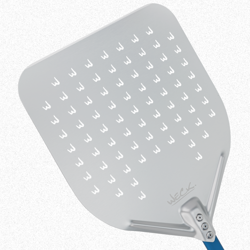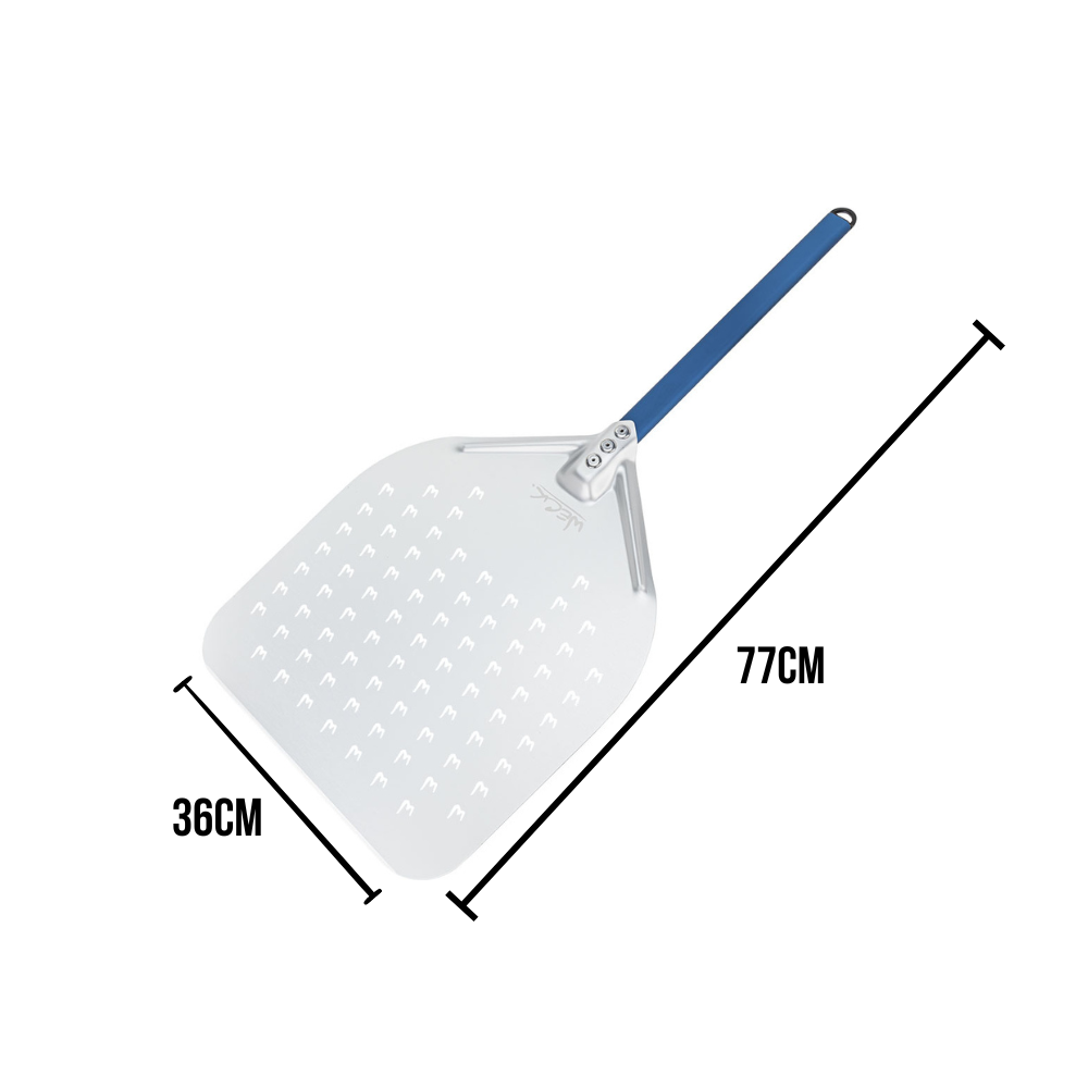Pá Perfurada p/ Enfornar Pizza Alumínio 35,5 x 40,5cm Azul Curto