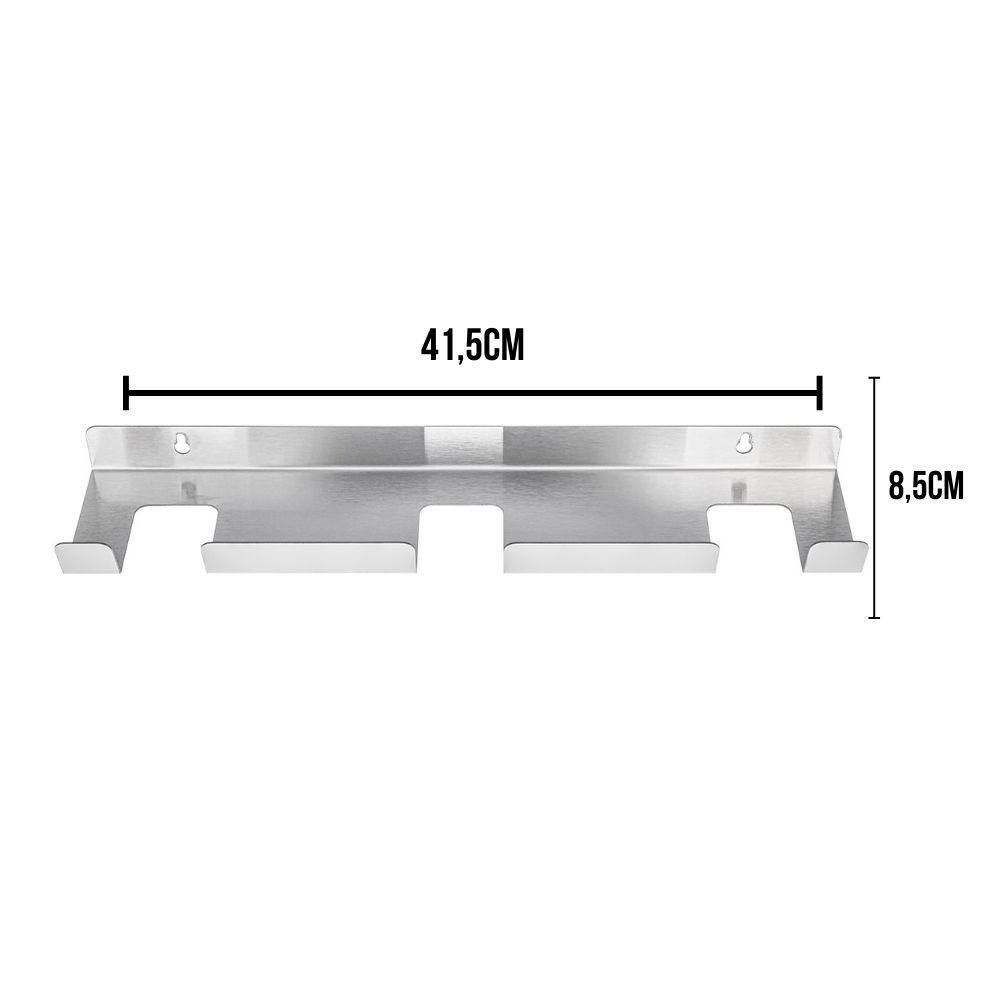 Feito de aço inoxidável de alta qualidade, o suporte é resistente à oxidação e projetado para durar anos, mesmo nos ambientes de cozinha mais movimentados. Seu design ergonômico facilita a montagem na parede (parafusos e buchas não inclusos), proporcionando uma fixação segura e estável.