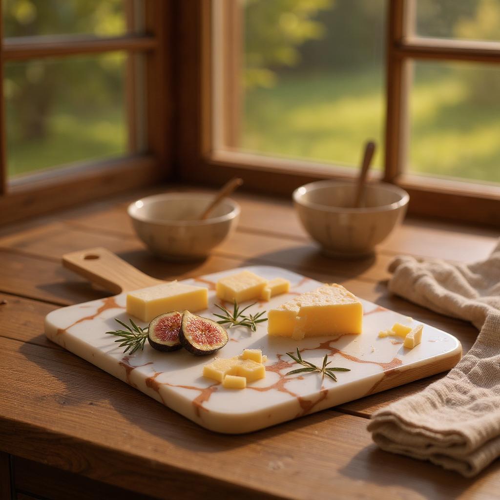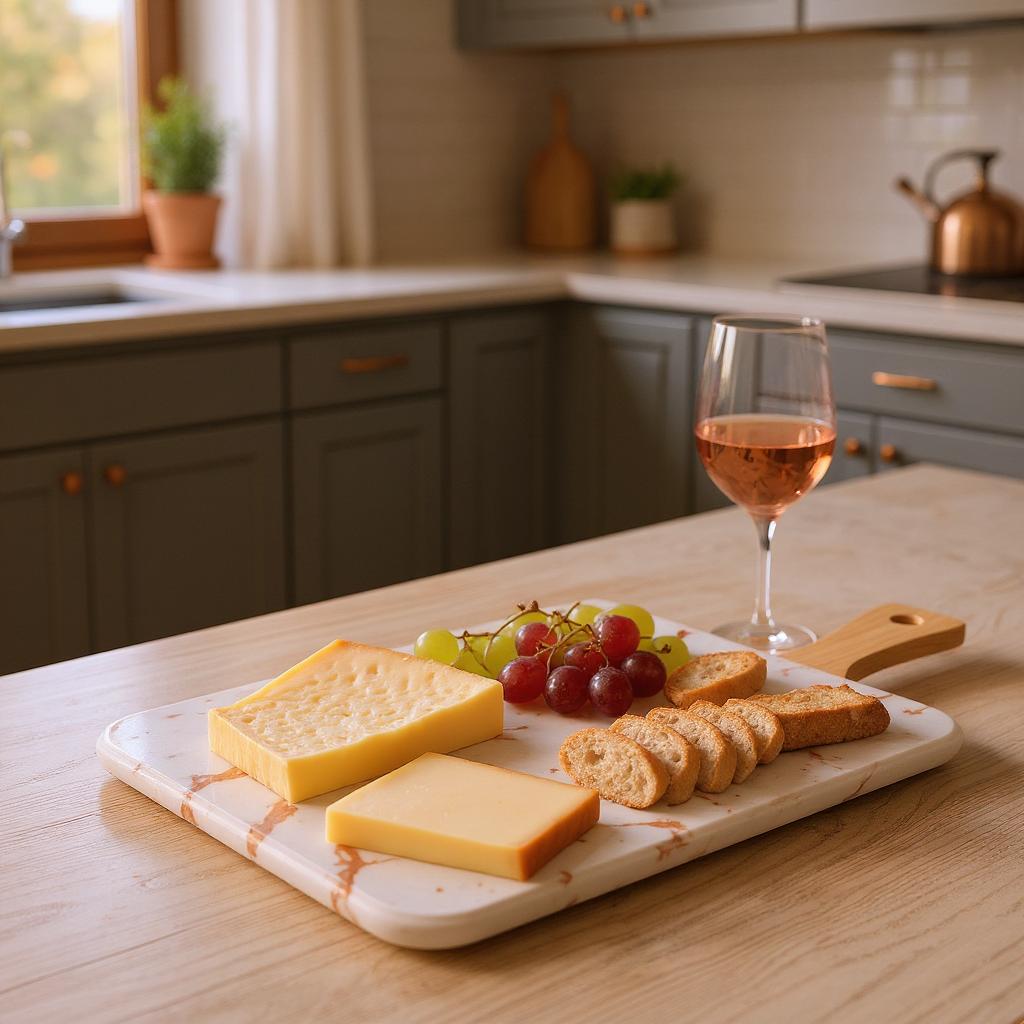 Visual marmorizado que valoriza saladas, antepastos, sobremesas e pratos prontos.